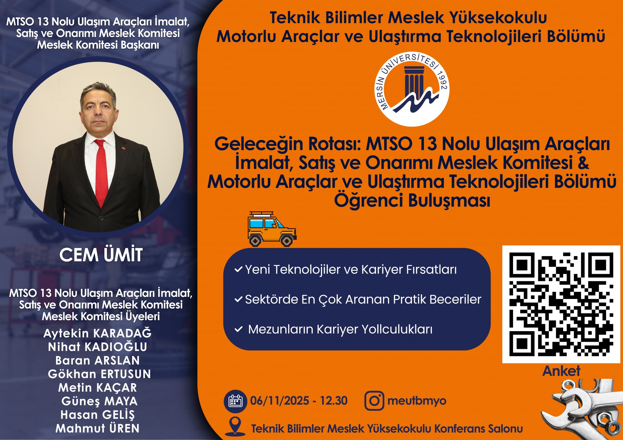 Meslek Yüksekokulumuz Malzeme ve Malzeme İşleme Teknolojileri Bölümü Mobilya ve Dekorasyon Programı tarafından, 3 Kasım 2025 tarihinde Meslek Yüksekokulumuz Konferans Salonu’nda okul-sanayi iş birliği kapsamında sektör temsilcileri ile öğrencileri bir araya getiren önemli bir seminer düzenlenmiştir.