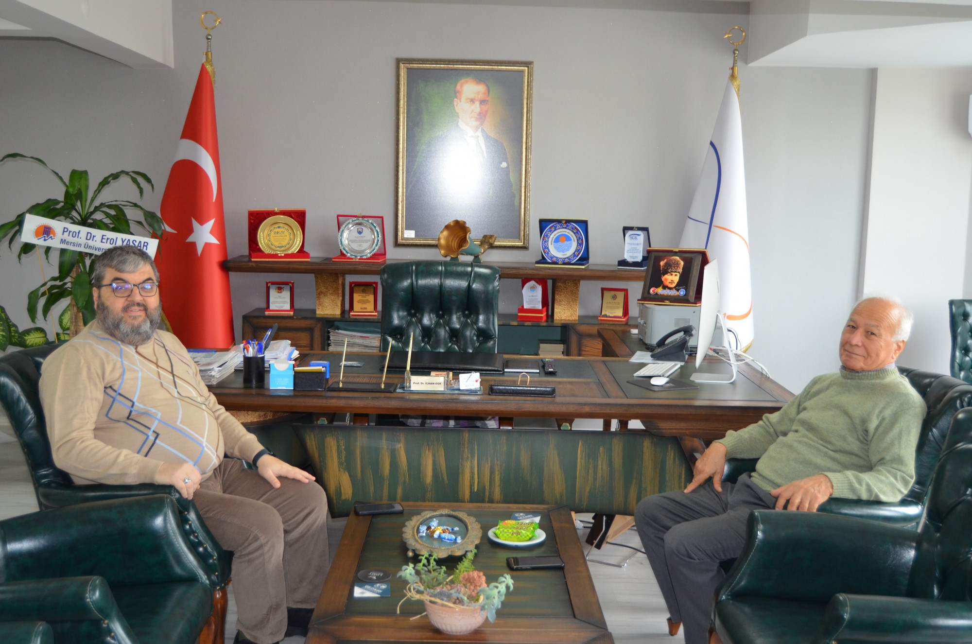 Merkez müdürümüz Prof. Dr. İlhan Ege’yi Üniversitemiz Mühendislik Fakültesi Çevre Mühendisliği Bölümünden emekli Prof. Dr. Halil Kumbur ziyarette bulunarak, ortak proje ve çalışmalar hakkında değerlendirmelerde bulundular.