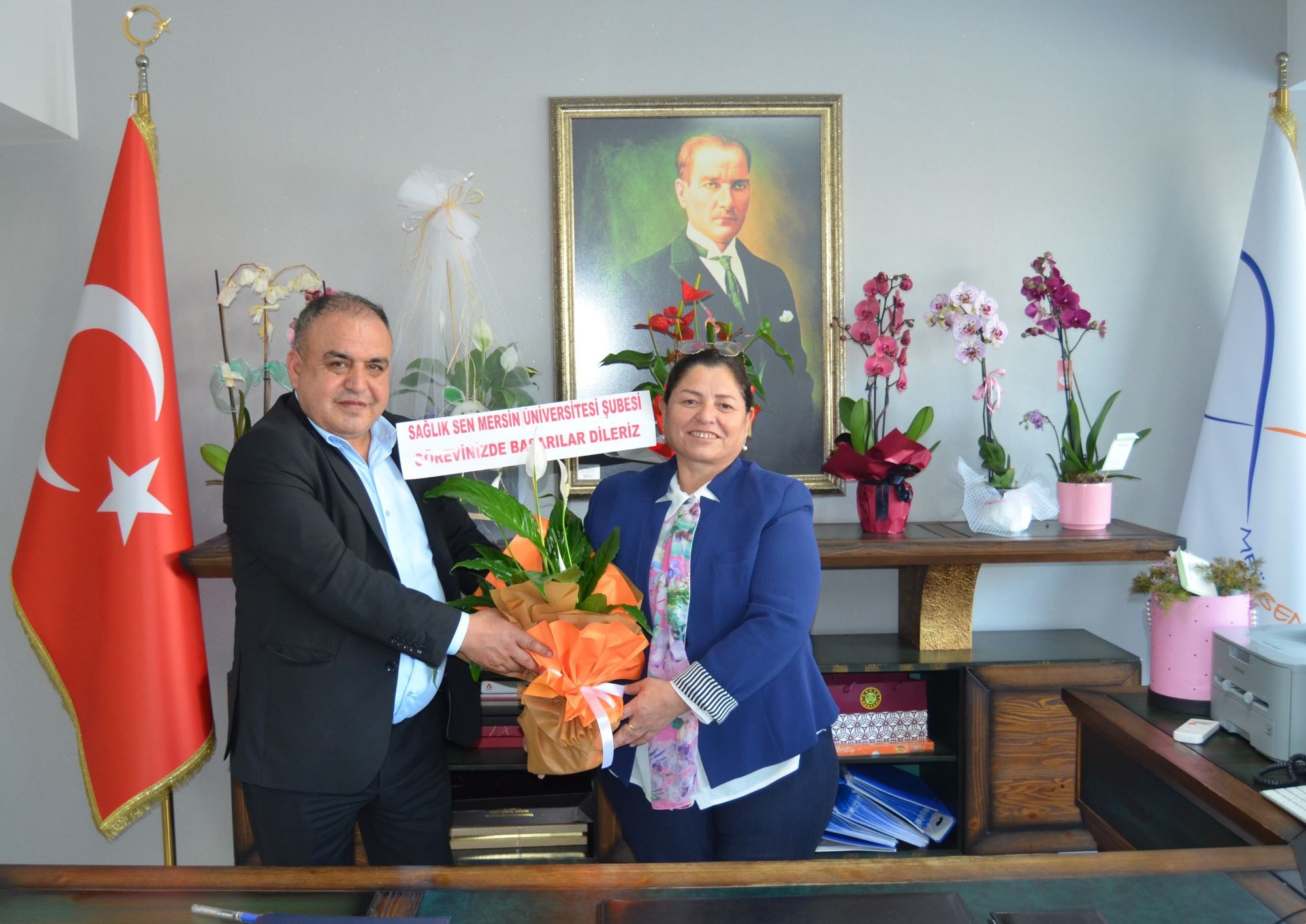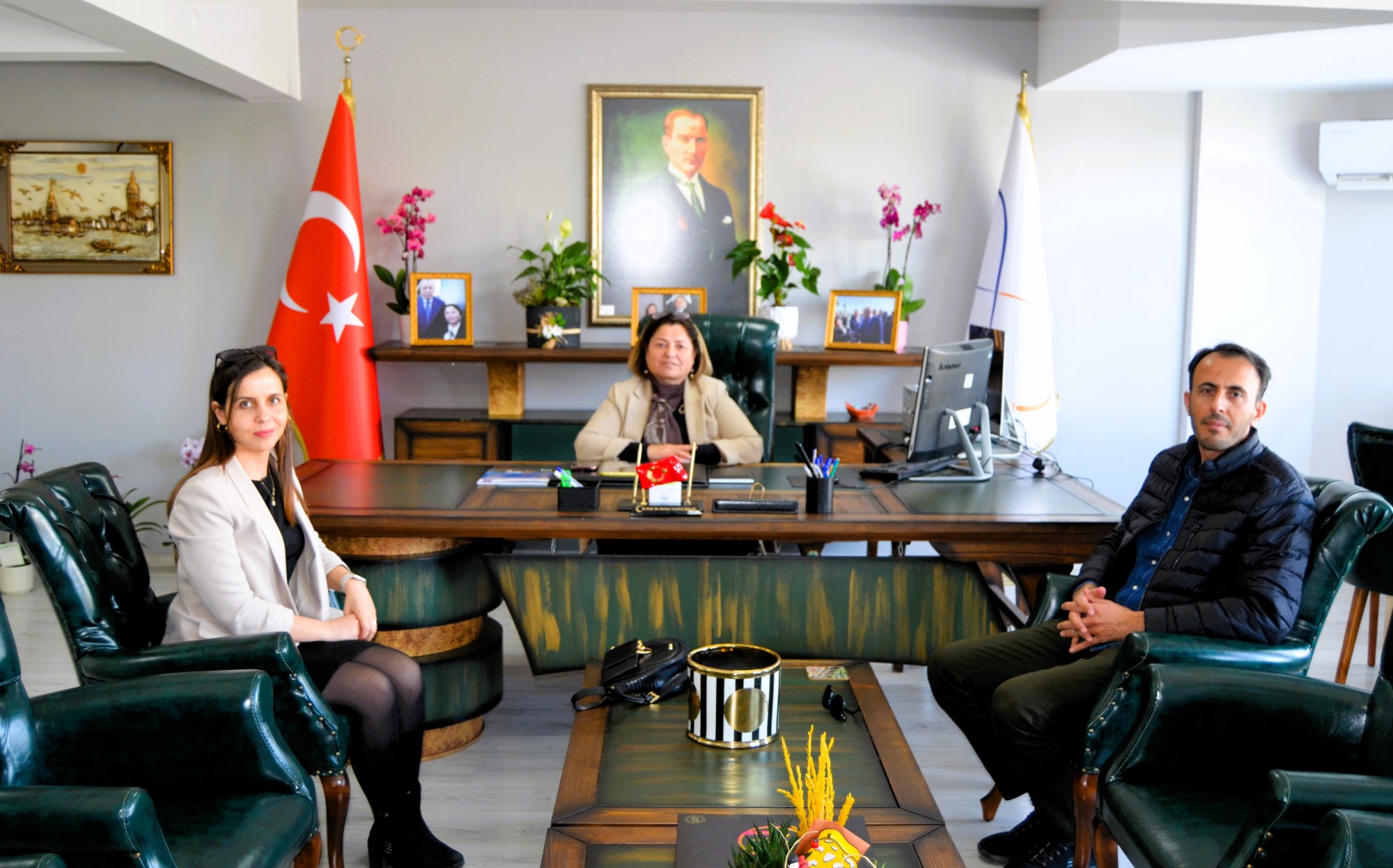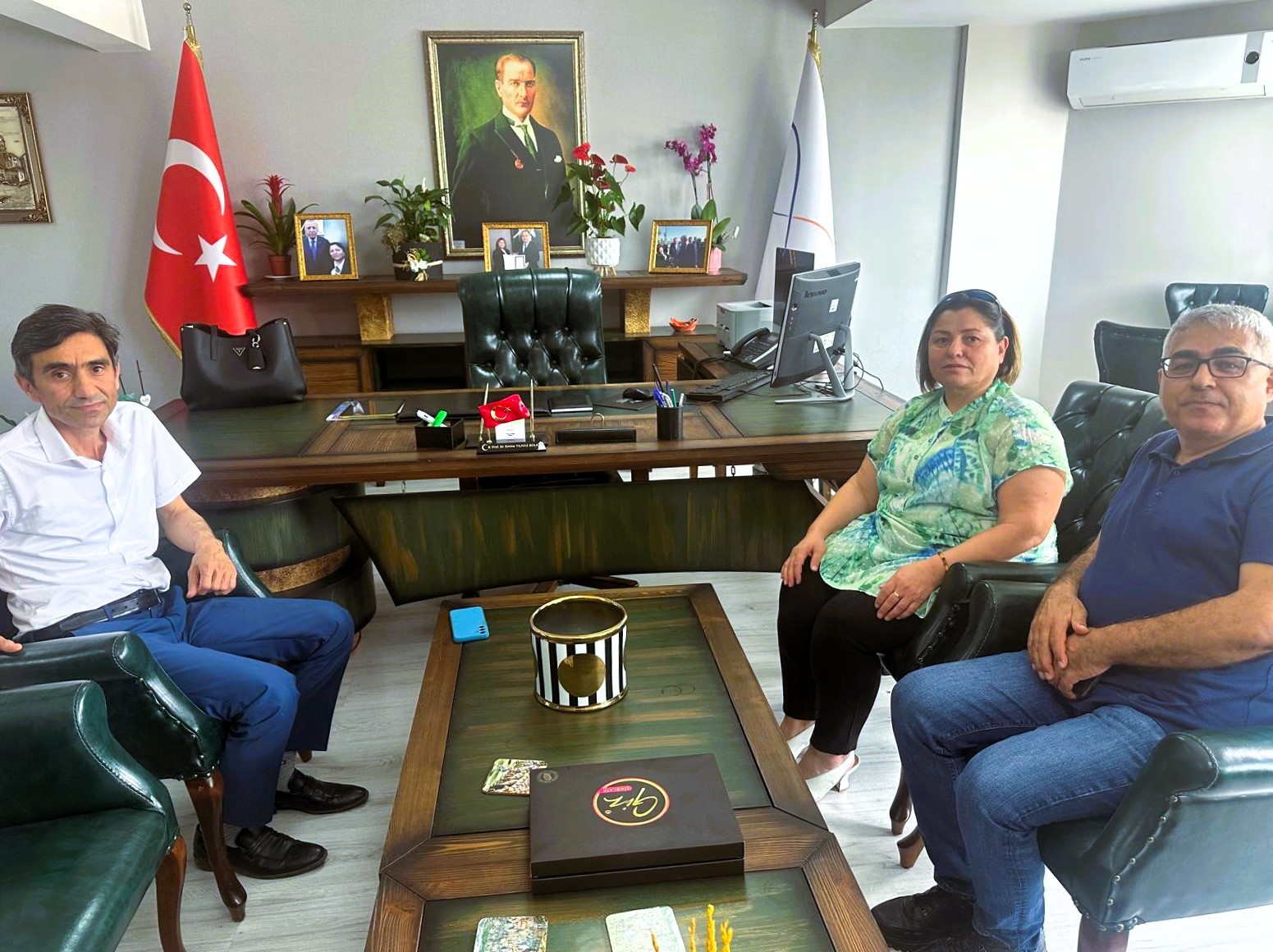 Merkez Müdürümüz Prof. Dr. Emine YILMAZ BOLAT' a Mersin Yenişehir İlçe Milli Eğitim Müdürü M.Necmeddin DİNÇ ve Yenişehir Cumhuriyet Anaokulu Müdürü Nursel Ata hayırlı olsun ziyaretinde bulunarak yeni görevinde başarılar diledi.